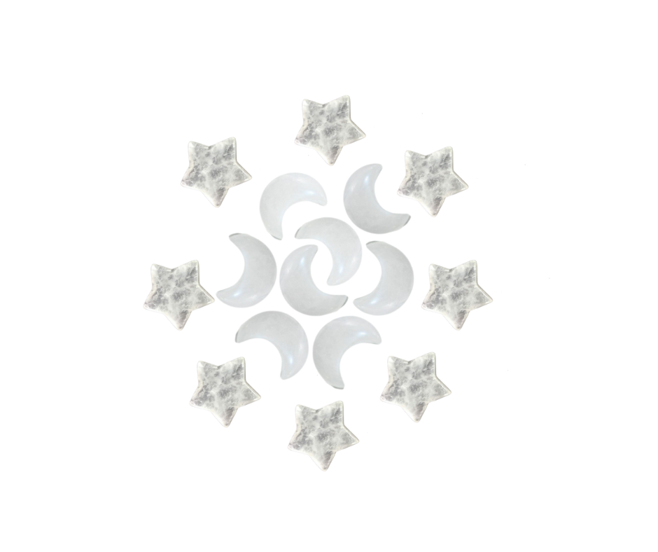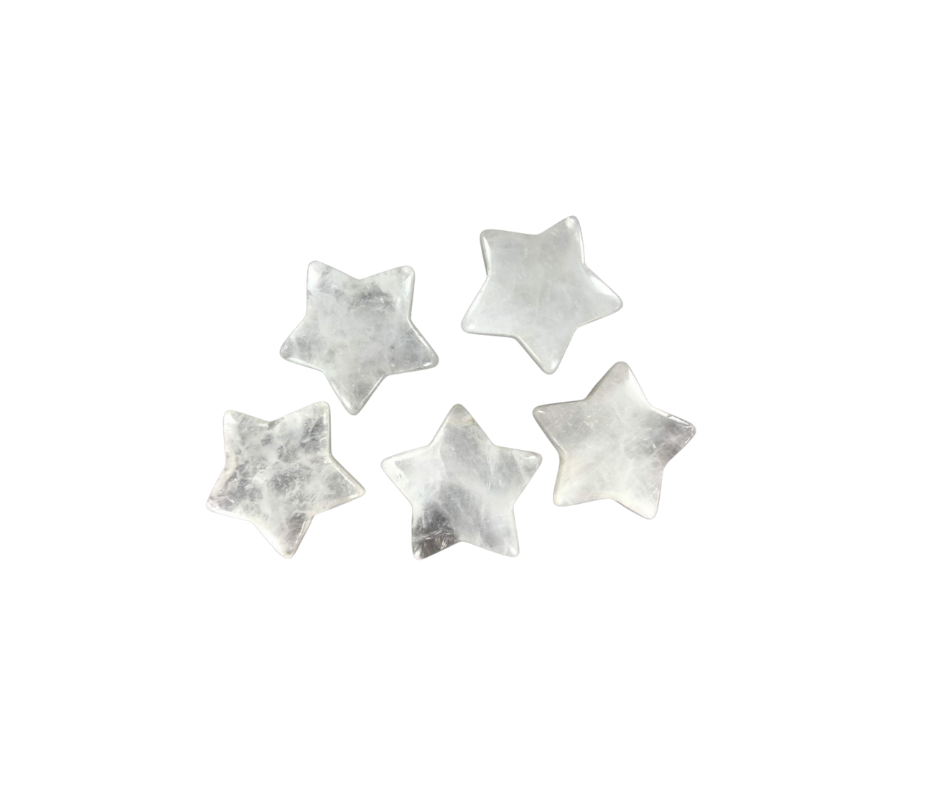 Clear Quartz Stars & Moons Illuminate · Amplify · Align Expertly carved from premium Clear Quartz, these celestial shapes blend clarity with cosmic energy. The moon embodies intuition, emotional balance, and divine feminine power, while the star represents guidance, hope, and spiritual light. Together, they form a sacred combination ideal for enhancing dreamwork, supporting manifestation, and promoting energetic harmony.