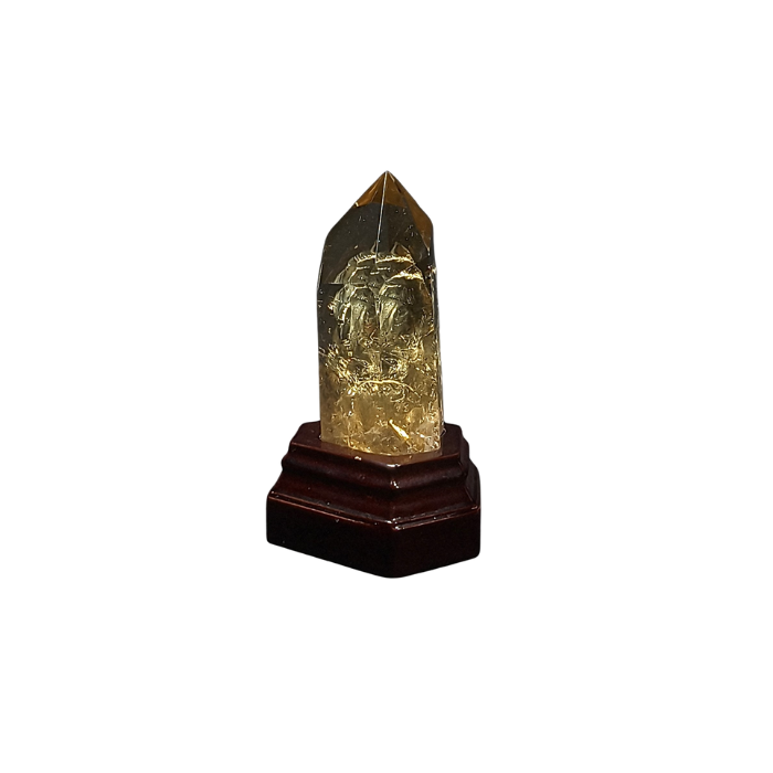 Rainbow Citrine Point with Wooden Stand merges vibrant energy with the transformative power of rainbows. It stimulates the Solar Plexus Chakra and resonates with the Fire element, enhancing abundance, mental clarity, and emotional healing. This crystal serves as a radiant symbol of potential, reminding you that joy, clear insight, and prosperity are always accessible.
