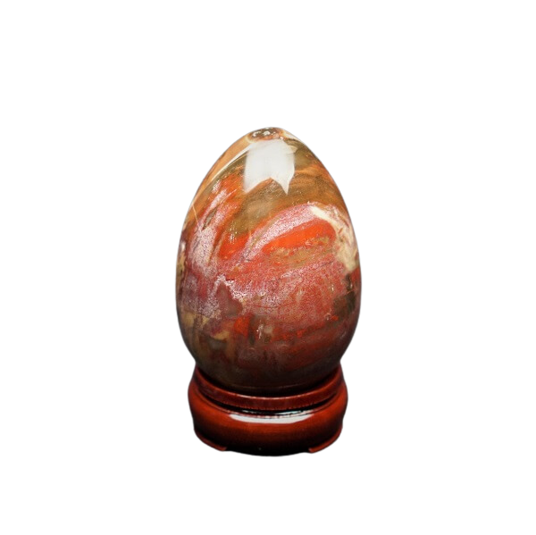 Petrified Wood Jasper Egg with Wooden Stand (450g)
