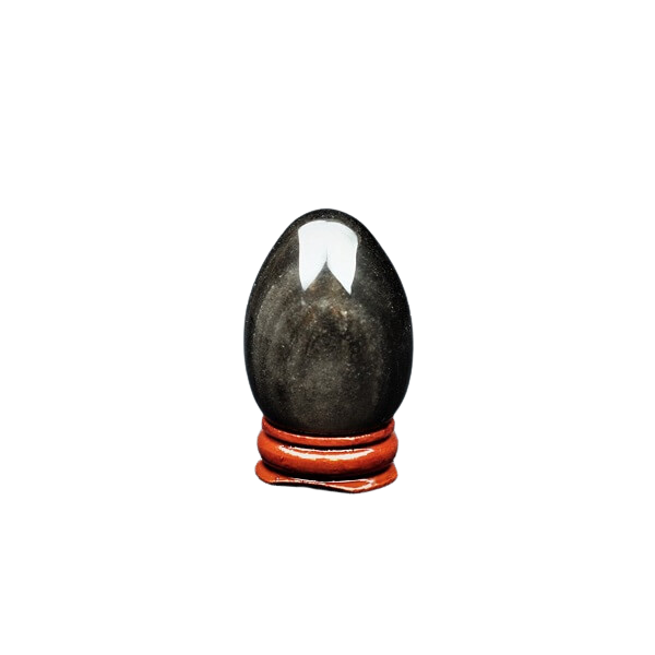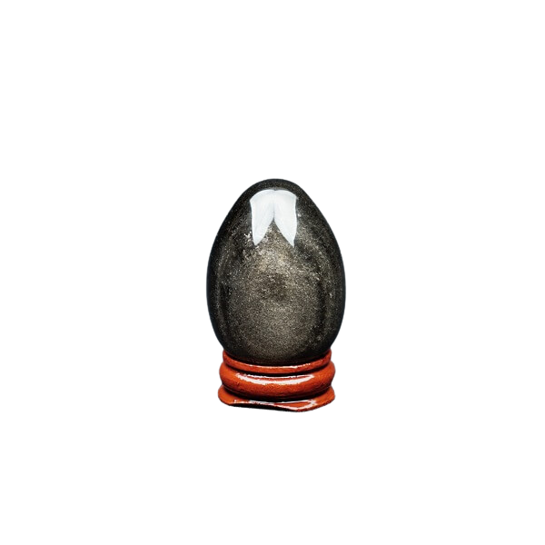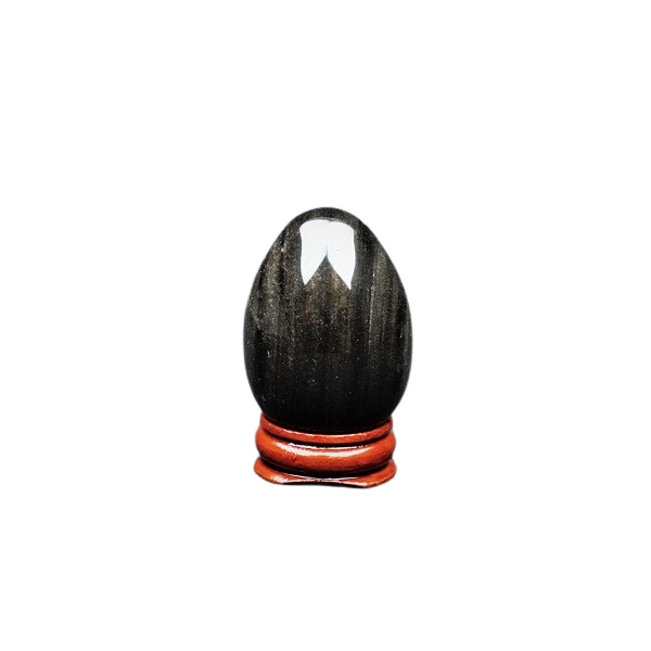 Silver Sheen Obsidian luminous egg, shimmering like moonlight, acts as a reflection of your inner self, embodying transformation, protection, and ancient wisdom. Its form symbolizes renewal, while its radiant surface uncovers deeper insights. Embrace its powerful presence to guide your journey.