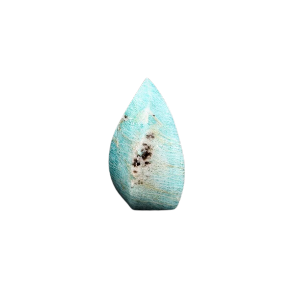 This hand-polished Amazonite Flame combines the transformative symbolism of the flame shape with the calming, truth-enhancing energy of genuine Amazonite. Known as the Stone of Courage and Truth, Amazonite empowers authentic expression, balances emotions, and radiates soothing turquoise-green hues with natural white streaks.