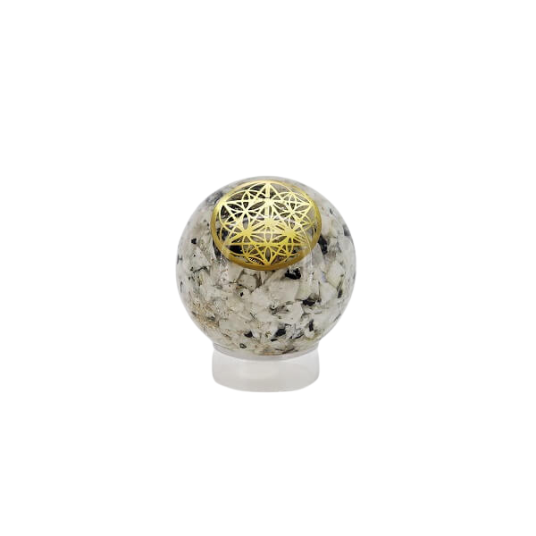 Rainbow Moonstone Orgonite Sphere serves as a powerful channel for intuition, harmony, and energy movement. Known as a stone of the Divine Feminine, Rainbow Moonstone supports enhanced intuition, emotional restoration, and deep spiritual awareness. Its mystical glow mirrors the moon's phases and illuminates inner light.