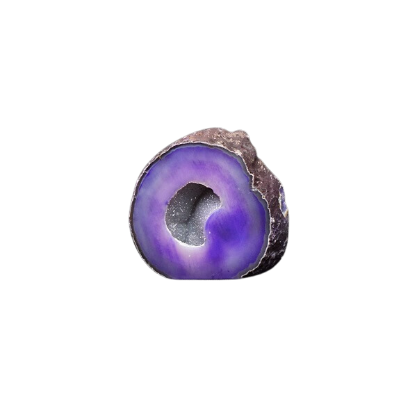Discover the Purple Agate Cave, a natural sanctuary with its intricate bands and hollow core that generate a powerful energy vortex. Perfect for grounding your rituals, enhancing your intentions, and supporting personal transformation. Use it by placing your ritual tools inside while reciting your affirmations or slip a written intention inside to deepen its energetic impact. This unique formation invites you to create a sacred space for growth and change.