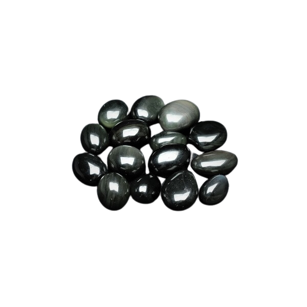 - Form: Tumbled Stone — naturally iridescent volcanic glass, polished to reveal rainbow sheen