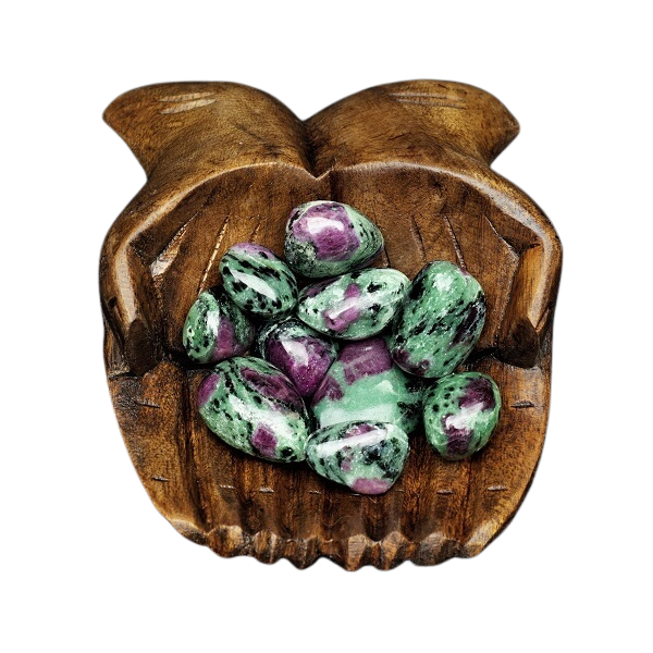 Ruby Zoisite resonates with the Root, Heart, and Crown Chakras — a rare combination that bridges earth and spirit in one stone. Ruby brings Fire element energy: passionate, protective, and activating. Zoisite brings Earth element energy: renewing, grounding, and growth-oriented. Together they support bold action rooted in compassion and clarity, making this an exceptional stone for those navigating transformation, emotional healing, or spiritual awakening. In tumbled form, their combined energy is smooth, accessible, and perfectly suited to daily carry and heart-centred practice.