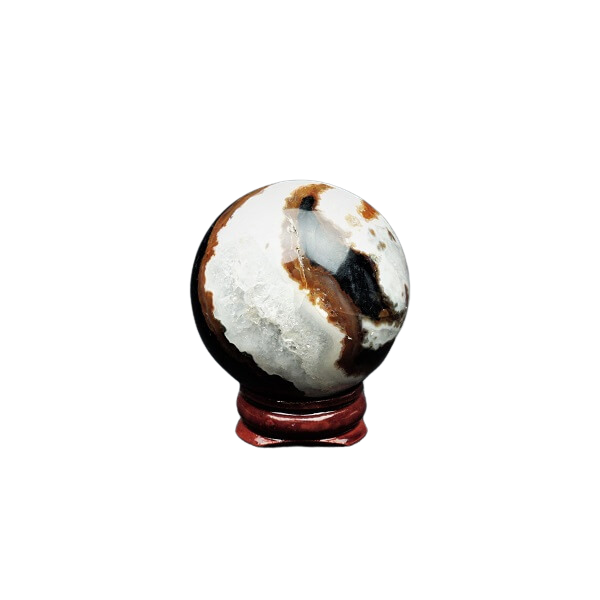 The Sardonyx Sphere embodies strength, harmony, and protective energy. It's perfect round form disperses energy uniformly, making it an excellent tool for creating balanced environments, safeguarding your aura, and grounding your intentions with elegance. Perfect for anyone looking to enhance emotional resilience, maintain energetic balance, and invite spiritual protection in their personal space or communal settings.