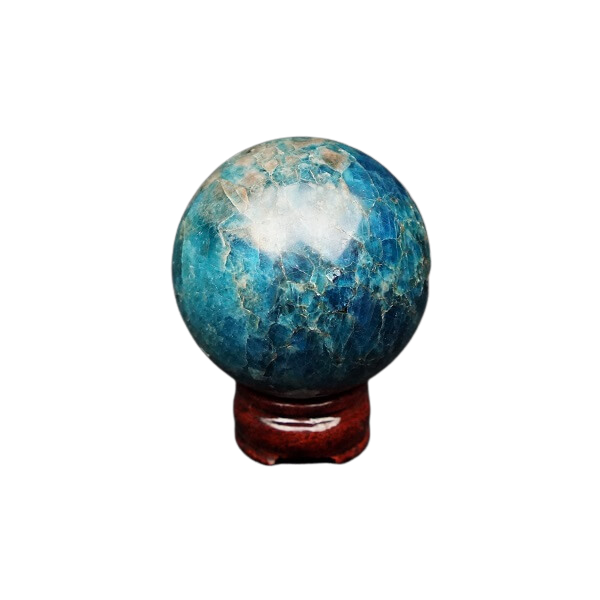 Blue Apatite Sphere (683g) with Wooden Stand