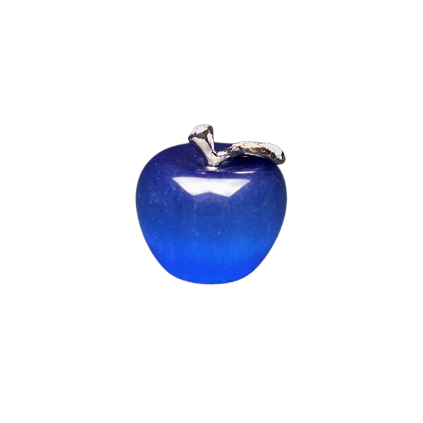 This Blue Cats Eye Apple (man-made) crystal, shaped into a radiant apple and embellished with rhinestones, represents peace, patience, and clear expression. Despite being synthetic, it offers powerful metaphysical benefits—soothing the mind, protecting your aura, and improving clarity in communication. Embrace serenity and balanced energy with this striking crystal.