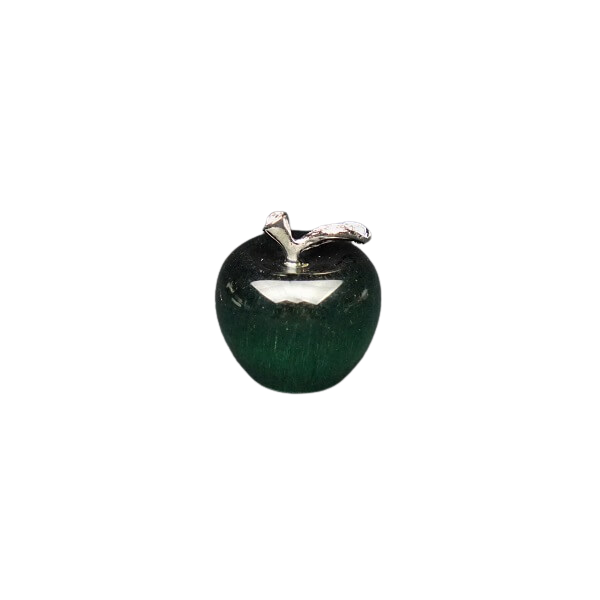 The Green Cats Eye Apple (man-made) embodies Balance, Prosperity, and Growth. This vibrant green apple, crafted from synthetic Cats Eye, signifies renewal, abundance, and emotional restoration. Its glowing chatoyant surface captures the essence of new beginnings and heartfelt expansion. While man-made, it radiates a lively energy that inspires upliftment and offers protection.