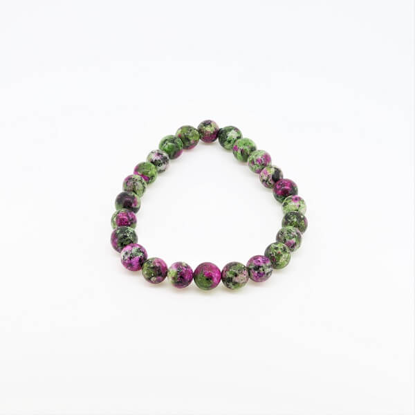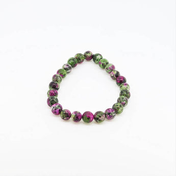 Ruby Zoisite Bracelet ignite your passion and nurture your growth with this captivating bracelet. Known as Anyolite, Ruby Zoisite combines vibrant Ruby with lush Zoisite, representing the balance between fiery energy and calm harmony. It stimulates the heart, revitalizes your spirit, and supports meaningful personal change. Wearing this 8mm bracelet lets you carry its powerful energy with you, blending emotional resilience with spiritual development.