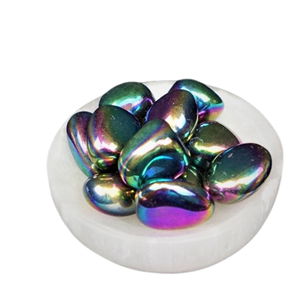 With their metallic rainbow sheen and smooth, polished finish, Rainbow Aura Hematite Tumbled Stones are both visually striking and energetically supportive. Their shimmering colours reflect light beautifully, making them perfect for display bowls, crystal grids, or as a pocket stone to carry throughout the day.