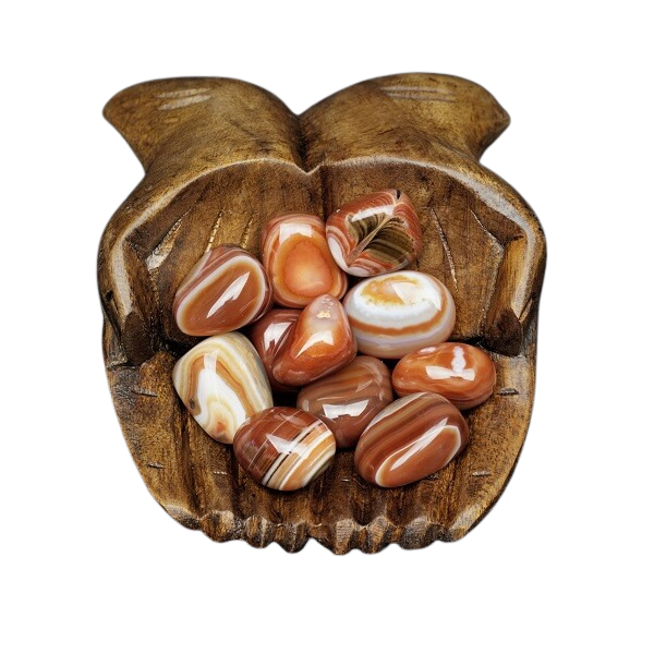 Carnelian Banded carries all the fierce, motivating energy of classic Carnelian, with the added depth and layered wisdom of its distinctive banding. The alternating layers of colour create a rich, multi-dimensional energy field that resonates powerfully with the Sacral and Solar Plexus Chakras, restoring creative flow, personal power, and emotional vitality in equal measure. Its banded structure is said to amplify the stone's energy in waves — building momentum gradually and sustainably, much like the layered formation of the stone itself. This makes Banded Carnelian an exceptional ally for long-term creative projects, sustained motivation, and the courageous pursuit of goals that require both passion and endurance. The tumbled form offers smooth, portable energy perfect for meditation, crystal grids, or carrying as a daily talisman of vitality and creative courage.