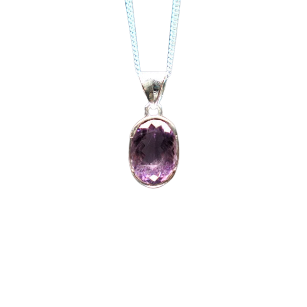 Amethyst Faceted Pendant 925 Sterling Silver Setting with Chain