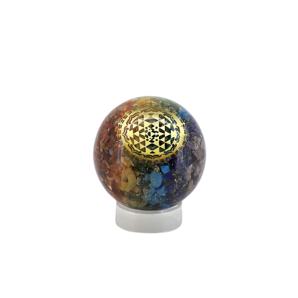 - Style: Orgonite sphere with Clear Quartz & chakra gemstones