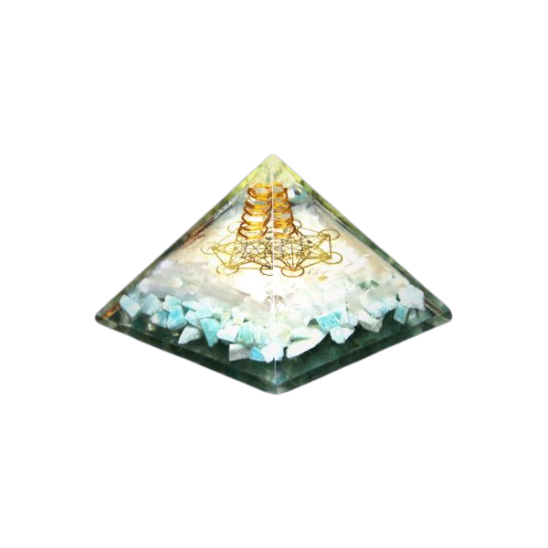 Amazonite Orgonite Pyramid (211g) Metatron Cube & EMF Protection