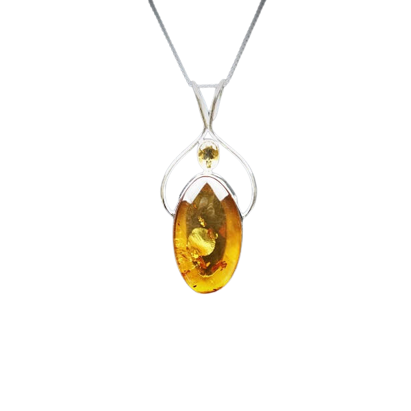 Amber & Citrine 925 Sterling Silver Pendant Joy & Grounding