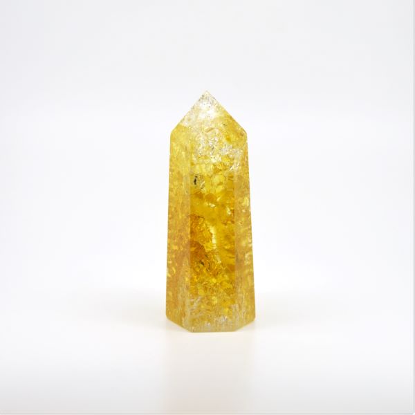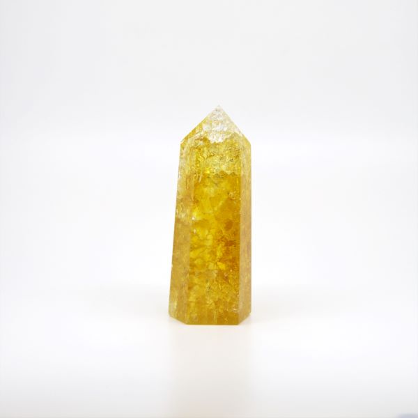 Experience joy and serenity with our Sunset Yellow Crackle Quartz, specifically designed to stimulate the Solar Plexus Chakra. This powerful quartz aligns with your energetic center to boost self-confidence. Also referred to as Fire and Ice Quartz, this unique variety showcases stunning rainbows.