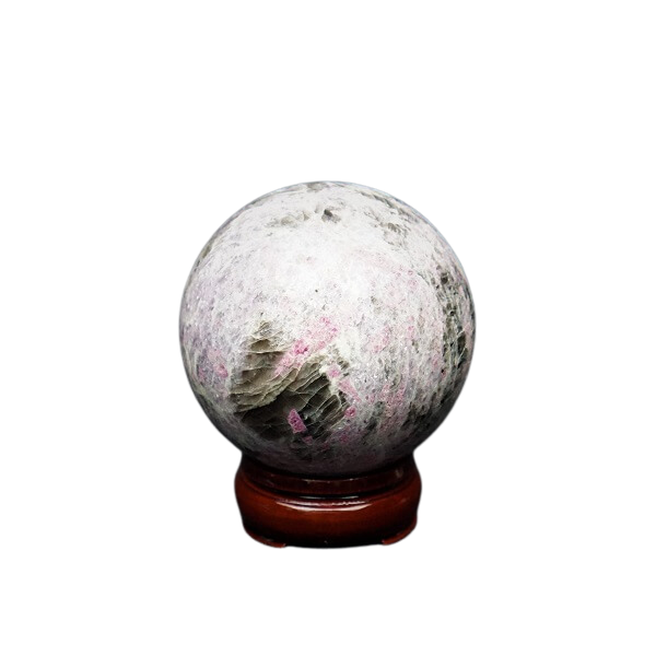 Pink Tourmaline Sphere with wooden stand - 790 grams