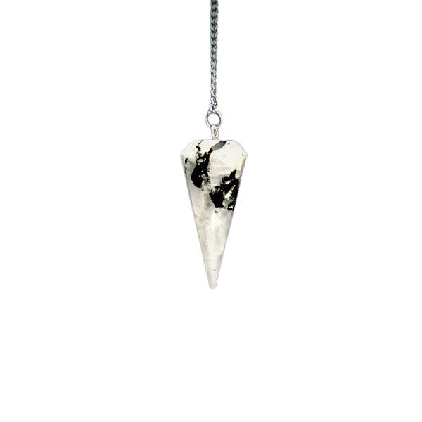 The Rainbow Moonstone Faceted Pendulum is a radiant instrument designed for divination, clarity, and a deep lunar connection. As the Stone of Inner Light, Rainbow Moonstone boosts intuition, fosters emotional equilibrium, and enriches spiritual understanding. Its faceted cut intensifies energy flow, perfect for accurate pendulum readings and harmonizing your energy.