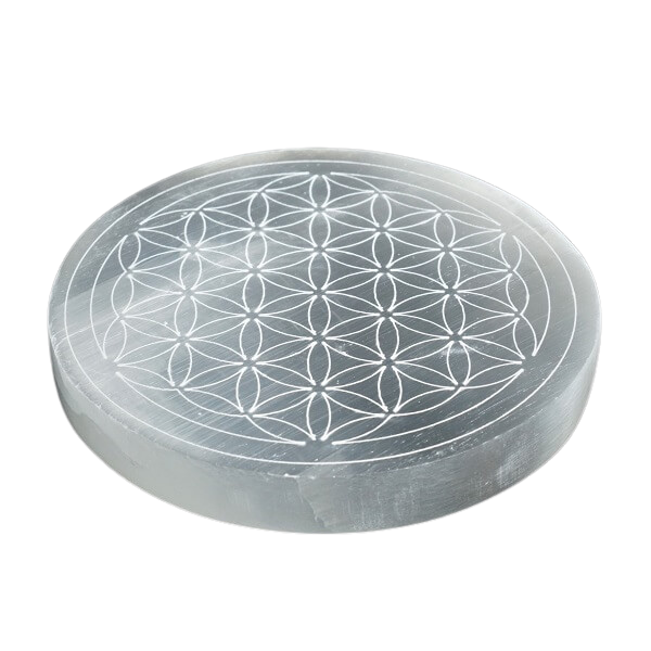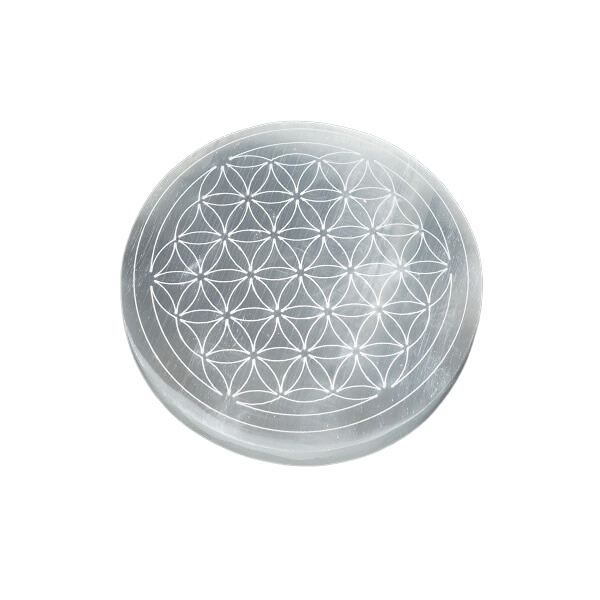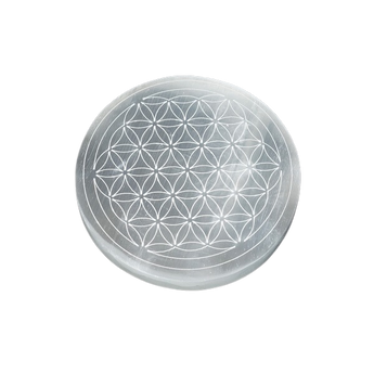 The Selenite Flower of Life Gridding Plate combines the purifying glow of Selenite with the timeless energy of the Flower of Life, a sacred geometry symbol embodying creation, unity, and divine design. This elegant plate provides an ideal surface for crystal grids, intention setting, and chakra balancing. Perfect for those aiming to refresh their energy, enhance manifestation, and create a sacred space for spiritual work. Handle with care, as Selenite is delicate and should remain dry. Cleanse your crystals using moonlight or smudging to maintain their vibrant energy.