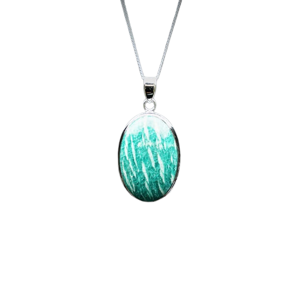 Amazonite Pendant – 925 Sterling Silver with Chain Calming Crystal