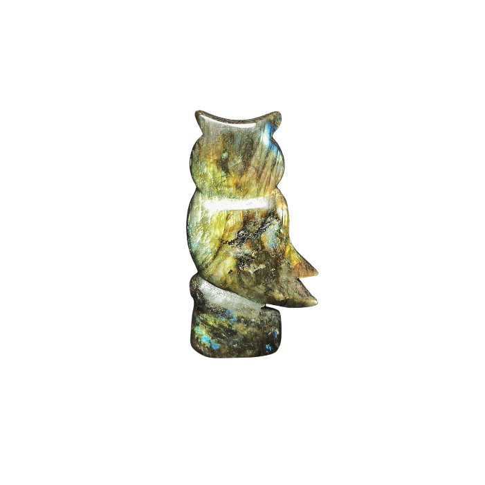 Please Note: This listing is for the exact Labradorite Owl shown in the photos – you will receive this specific piece with its unique flash pattern, color intensity, and character. Weight and dimensions are approximate. Your owl includes the crystal carving only.