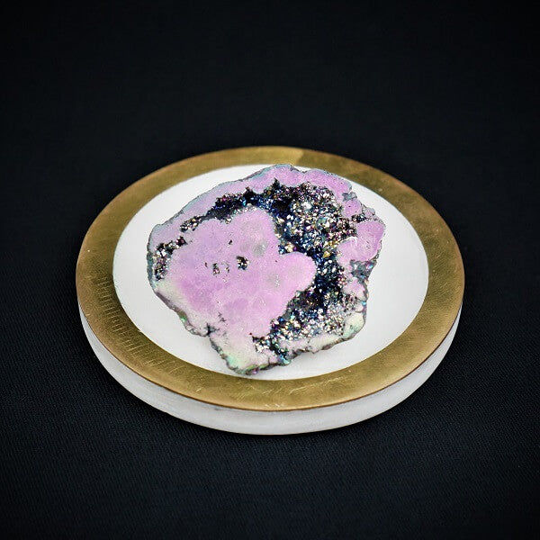 Aura Quartz makes a wonderful meditation companion. If you are someone who struggles to quieten your mind whilst meditating using a piece of this to hold, letting yourself go right into each of the colors, it can be very mind-clearing. It can be perfect for the center of your gridwork, and another beautiful addition to your sacred space or crystal altar!